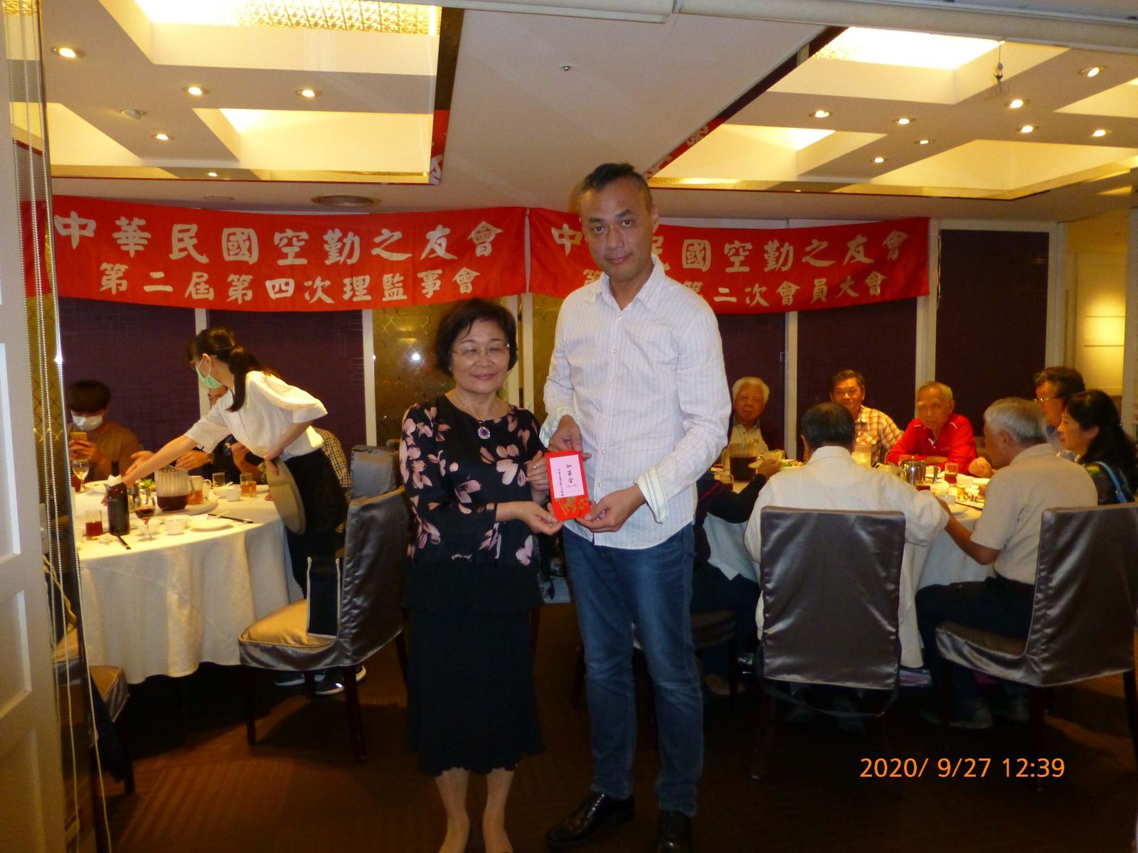 會後中華民國空勤之友會贈送中秋節加菜金20萬元予空勤總隊。由周芳如理事長頒發林立威大隊長代表接受。