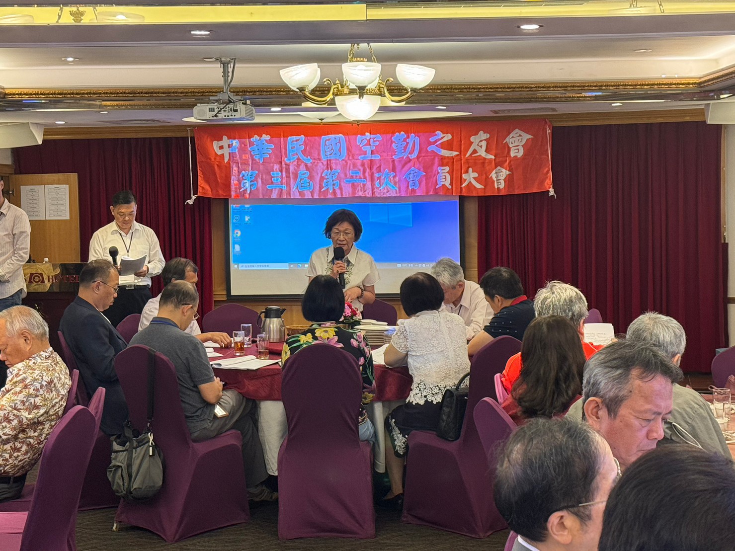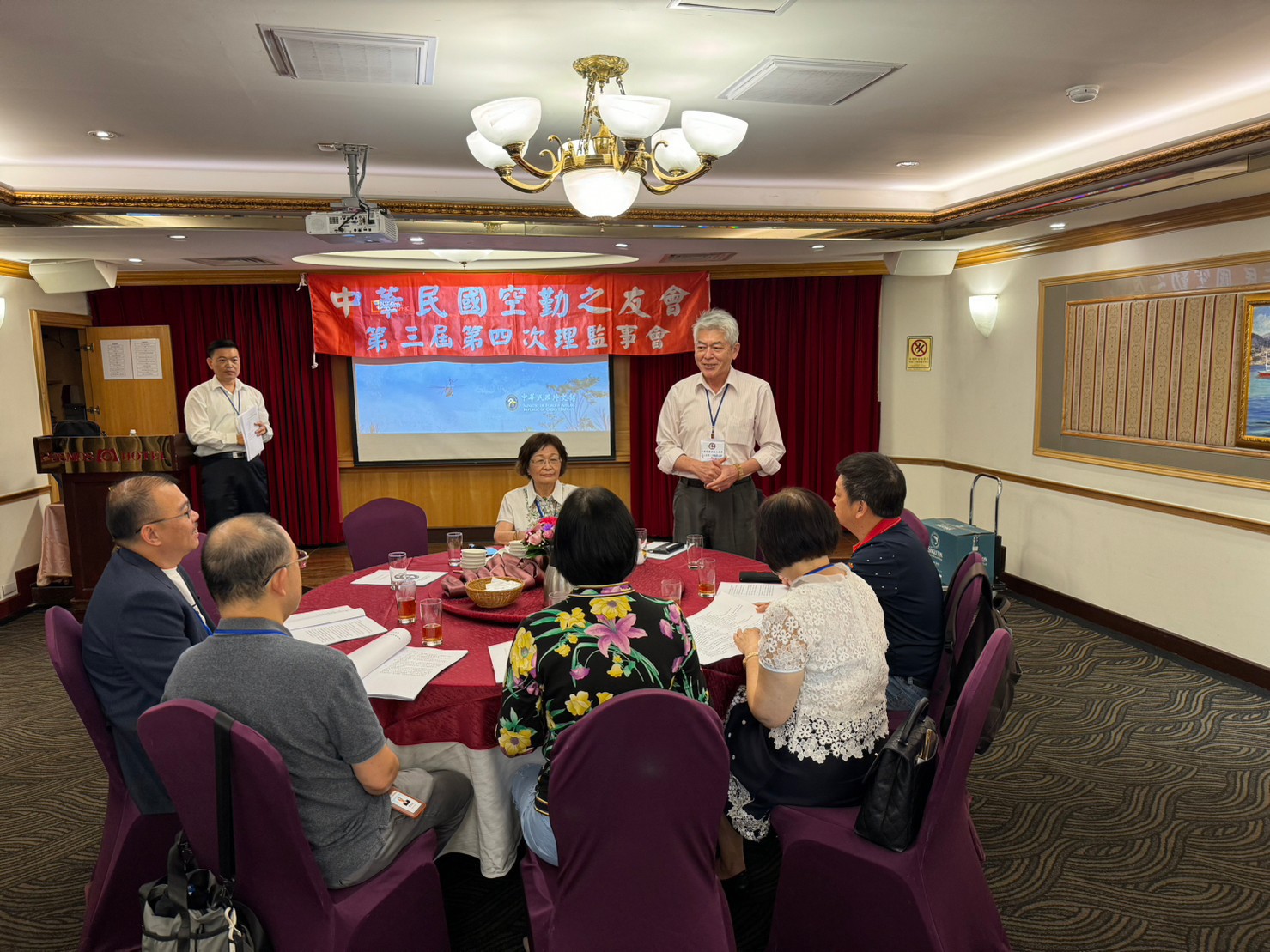 中華民國空勤之友會,2023.10.07星期六假台北市忠孝西路一段43號天成大飯店天美廳,召開第三屆第四次理監事會議及第三屆第二次會員大會,由理事長周芳如主持。內政部空勤總隊井延淵總隊長,親自率領鄭榮豐、鄭問堂兩位副總隊長、周宏聲主任秘書及林國強、林立威兩位大隊長蒞臨指導。