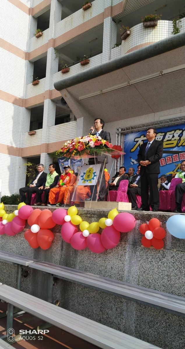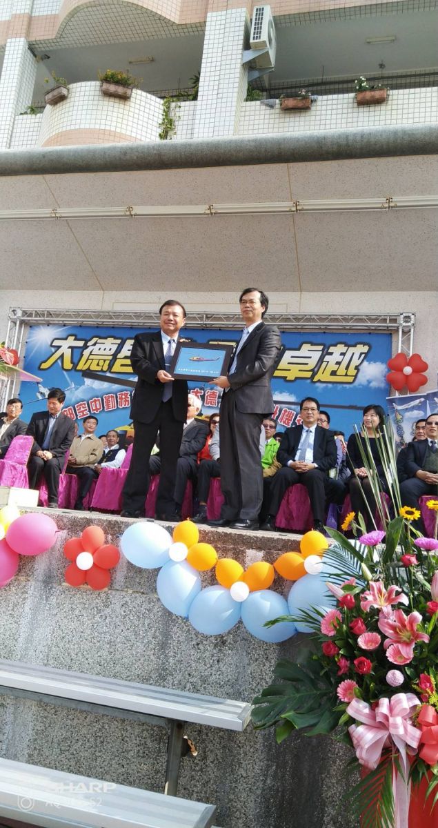雲林縣私立大德工商明年7月將設立飛機修護科,獲內政部贈送一架除役UH-IH空勤救災直升機,今日上舉行贈送交機儀式,由內政部空勤總隊簡任秘書鄭問堂代表應送給校方,學校出動全校師生在操場迎接直升機,11點左右空勤救災直升機螺旋槳聲音出現,直升機盤旋一圈後,緩緩降落在操場上,現場響起熱烈掌聲。