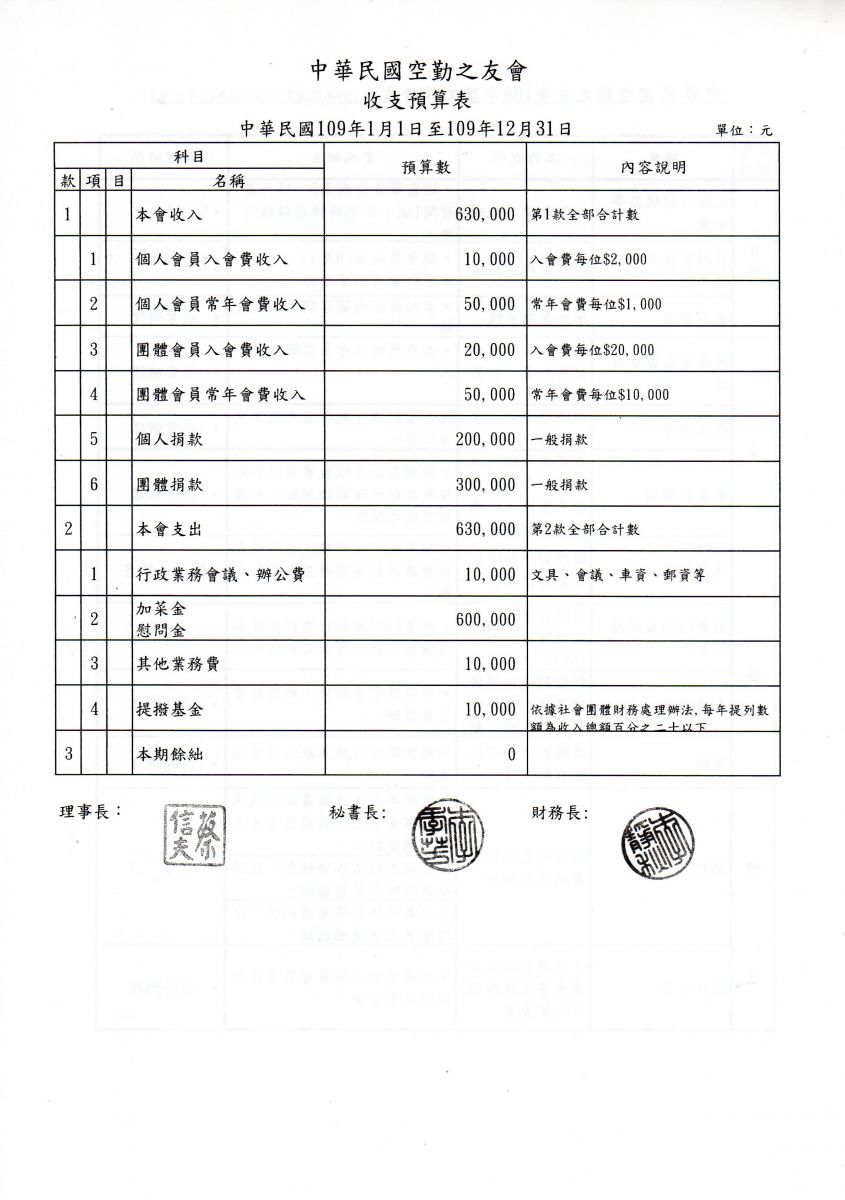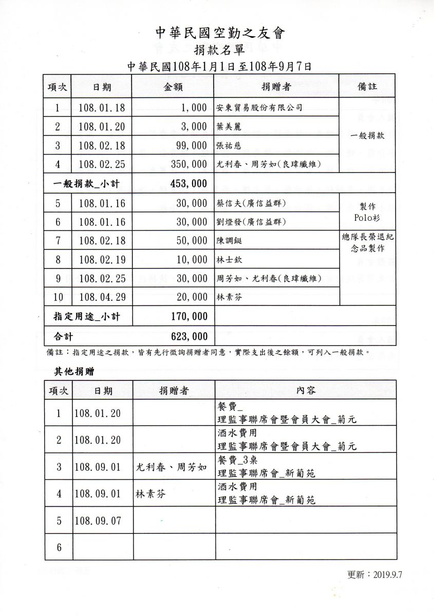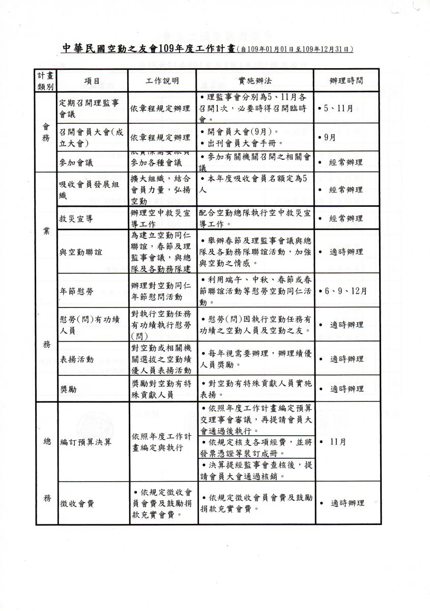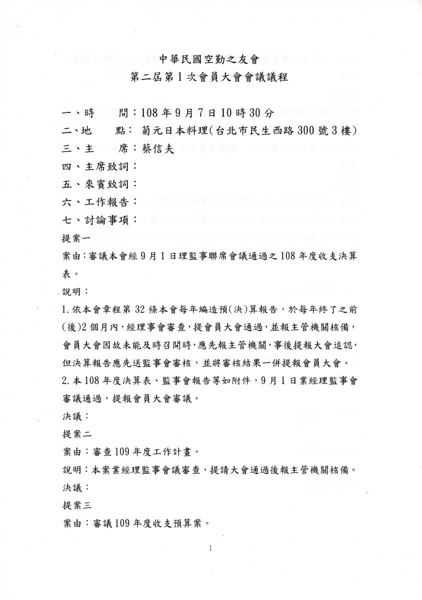 2019.09.07空勤之友會第二屆第一次會員大會會議議程