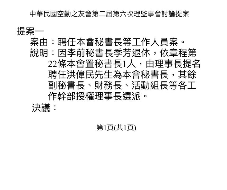 2022.04.28空勤之友會第二屆第六次理監事聯席會提案