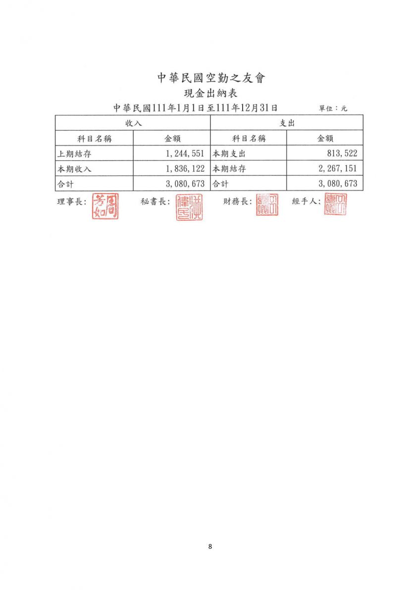 中華民國空勤之友會111年度現金出納表(111.01.01-111.12.31)