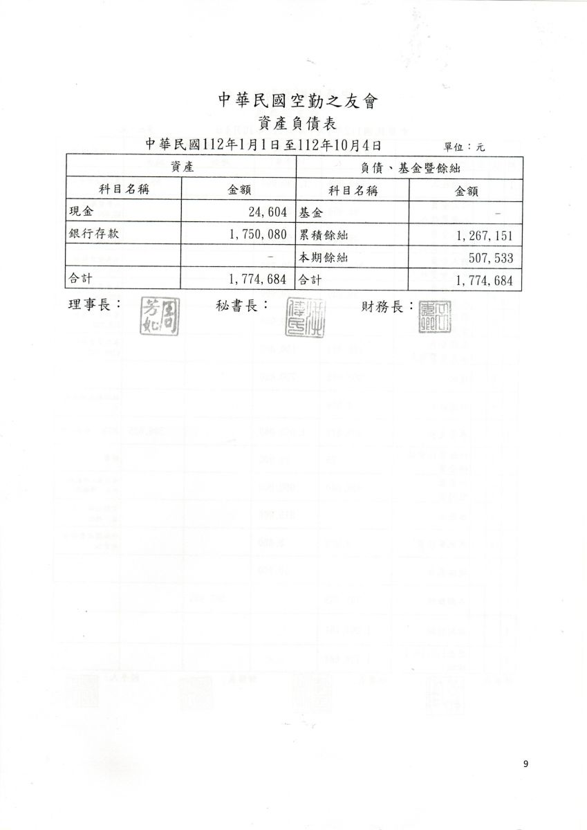 中華民國空勤之友會112年度資產負債表(112.01.01-112.10.04)