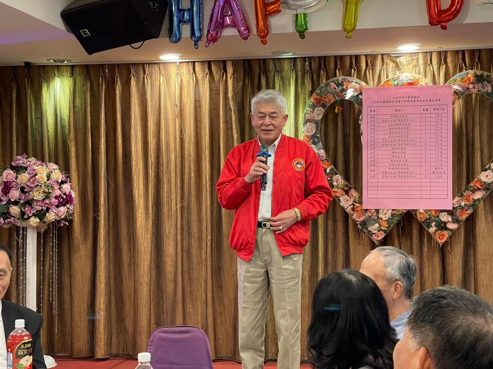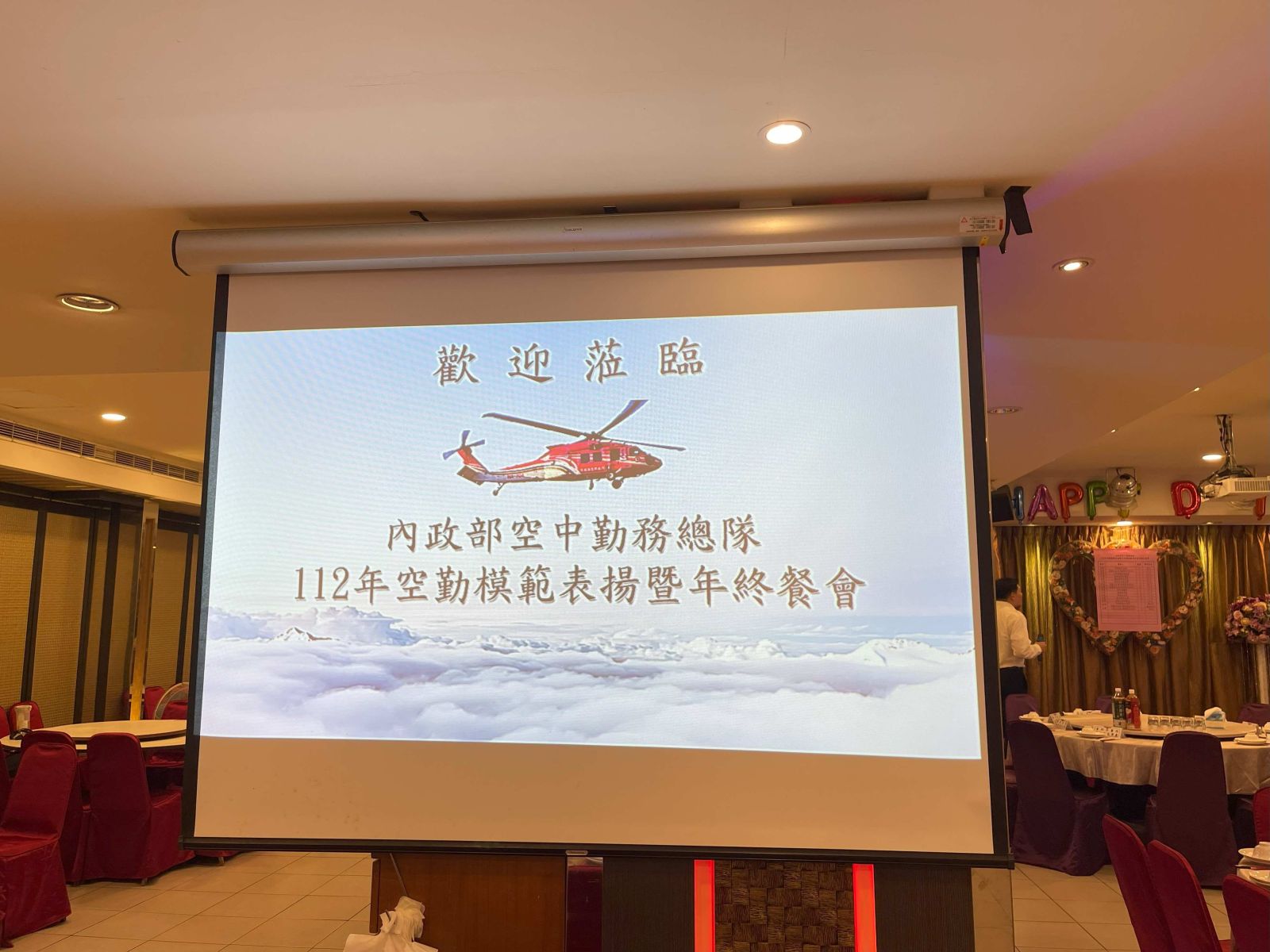 內政部空中勤務總隊,假新北市新店區民權路50號2樓基隆全家福海鮮餐廳新店店,舉辦112年空勤模範表揚暨年終聯誼聚餐,由空勤總隊井延淵總隊長主持,貴賓雲集,交流熱絡,餐會中抽獎,高潮迭起。